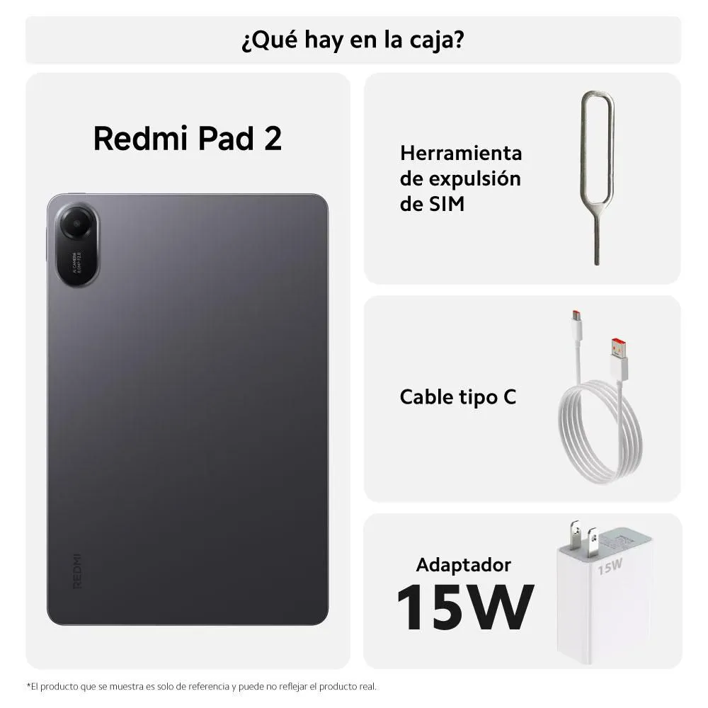 Redmi Pad SE, cargador de corriente, cable USB, tarjeta de garantía, guía del usuario